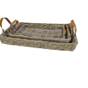 Dienblad opengewerkt Grey Rotan 60x40x13 & 55x34x11