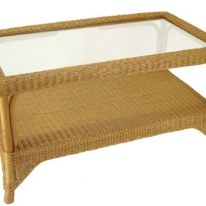 Ronde rotan salontafel Britt met glasplaat Doorsnee 60 cm Hoogte 56 cm