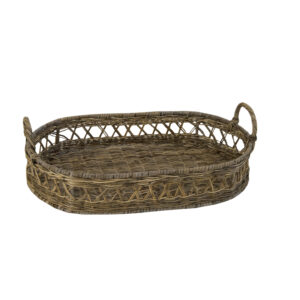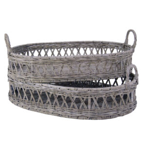 Dienblad opengewerkt Grey Rotan 60x40x13 & 55x34x11