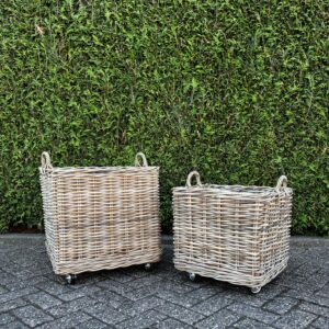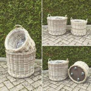 Rieten vensterbankmand, bloemenmand, plantenmand van grey rotan.