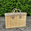 Rieten tas van palmblad en leer.