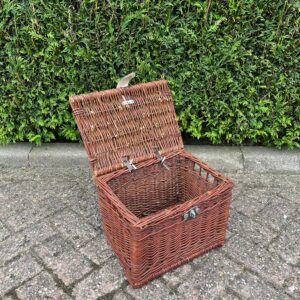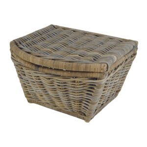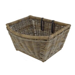 Deze fietsmand is gemaakt van rotan in naturel kleur en is voorzien van een deksel.