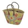 Rieten schoudertas, gemaakt van palmblad, met lange leren hengsels.