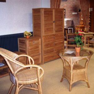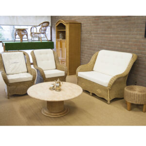 Stoelen met armleuning gemaakt van Lloyd Loom in taupe kleur