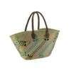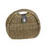 Rieten dames tasje gemaakt van Grey slimiet (rietsoort) met lederen handgrepen en sluiting.